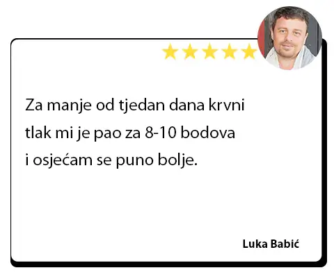 Kupio sam ovo bratu nakon što mu je stomatolog rekao da mu je tlak previsok i da mu neće izvaditi zub dok ne posjeti liječnika. Pročitao sam recenzije ove formule za krvni tlak i činilo mi se da je ovo najbolji izbor, tako da sam mu uzeo na kraju ovaj proizvod. Redovito ga je uzimao do odlaska kod liječnika i do tog trena krvni tlak mu se vratio u normalu. Kupio si je još 3 bočice kako bi mogao nastaviti s korištenjem. I ja sam ih počeo uzimati jer sam pod stresom zbog svog posla i želim ih koristiti za svaki slučaj kao prevenciju. Hvala vam!