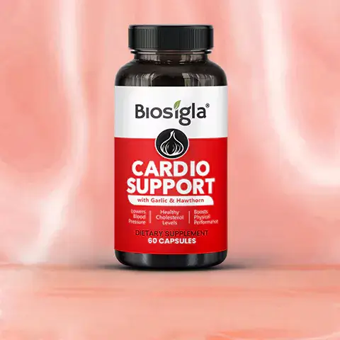 Biosigla - Cardio Support biljne kapsule brzo se apsorbiraju u krvotok, gdje aktivni sastojci djeluju na poboljšanje kardiovaskularne funkcije. Ekstrakt sjemenki grožđa potiče cirkulaciju i jača krvne žile, a list masline pomaže u regulaciji krvnog tlaka i razine kolesterola. Bobice gloga pospješuju protok krvi čime promiču zdravlje srca, a češnjak smanjuje upalu i pomaže u snižavanju kolesterola. Zajedničkim djelovanjem ovi sastojci podržavaju zdrav rad srca, poboljšavaju protok krvi i smanjuju rizik od kardiovaskularnih bolesti, te osiguravaju bolju cirkulaciju i jači, zdraviji kardiovaskularni sustav.