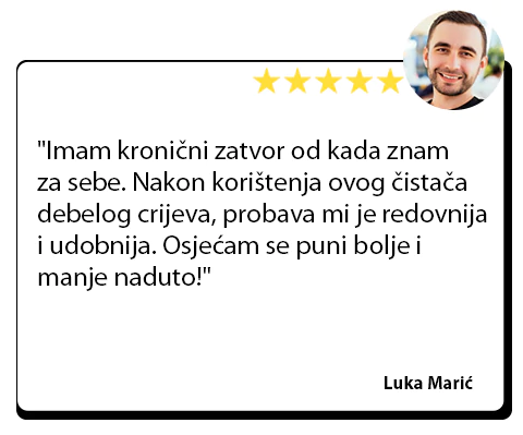 Uvijek sam mislila da me muči masnoća u području trbuha, ali ispalo je da se radi o nadutosti! Od kada sam počela koristiti ovaj čistač crijeva, trbuh mi je ravniji, osjećam se lakše i nestala je nadutost. Najiskrenije, proizvod je odličan! Sviđa se i mojim frendicama!