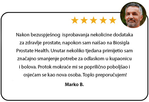 Biosigla Prostate Health je čudo—simptomi su skoro u potpunosti nestali i kvaliteta života mi se značajno poboljšala. Ne mogu biti zahvalniji."